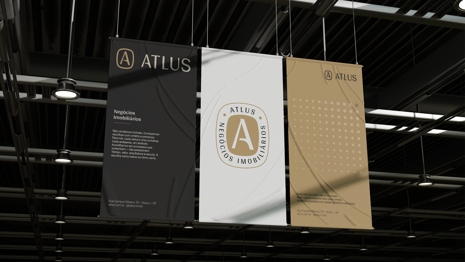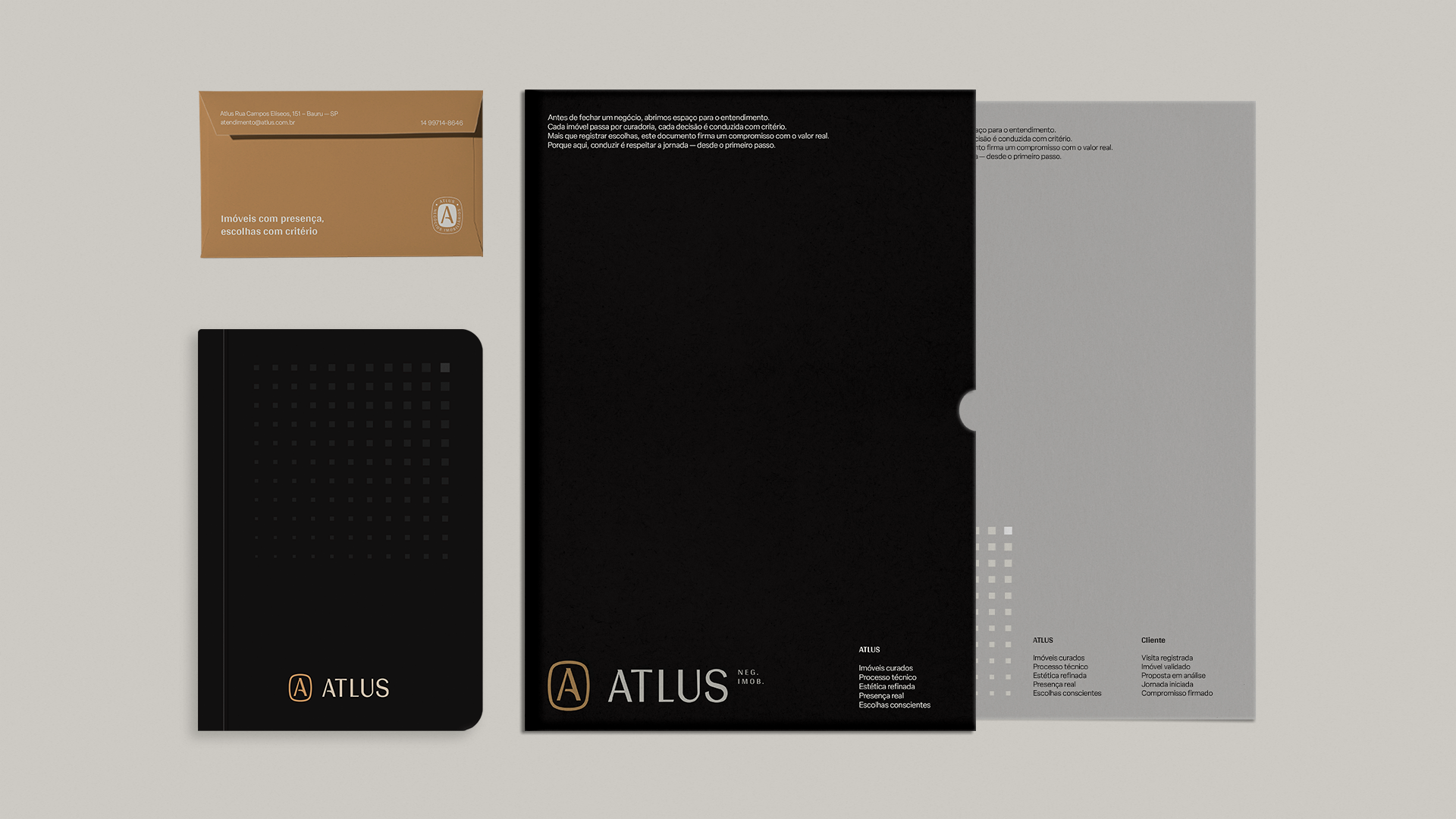 ATLUS is an innovative Brazilian real estate brand that challenges the "business as usual" mindset of the property market. Born from the need to restore value to the buying and selling process, Atlus moves away from generic aesthetics and shallow relationships to offer a technical, sober, and present guidance. While the traditional market specialized in "showing properties," Atlus specialized in "conducting people" through life-changing decisions. With a solid foundation inspired by the myth of Atlas—the Titan who sustained the sky—the brand evokes firmness, responsibility, and a silent authority that inspires trust.